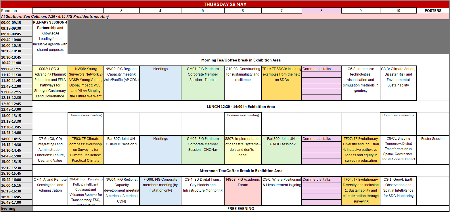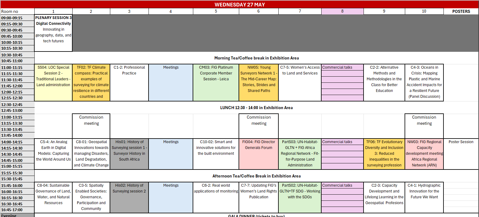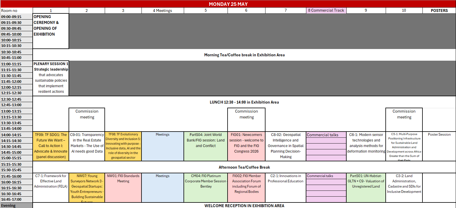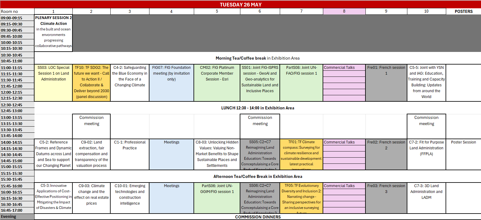 | Evenings | Welcome Reception | FIG Commission Dinners | Gala Dinner | |||||